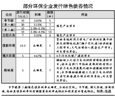 近一年來,綠色債券在我國(guó)債券市場(chǎng)上表現(xiàn)搶眼,成為企業(yè)特別是環(huán)保企業(yè)有力的融資工具。今年8月,北控水務(wù)集團(tuán)有限公司(以下簡(jiǎn)稱“北控水務(wù)”)發(fā)行綠色熊貓債;隨后,博天環(huán)境集團(tuán)有限公司(以下簡(jiǎn)稱“博天環(huán)境”)、北京清新環(huán)境技術(shù)股份有限公司(以下簡(jiǎn)稱“清新環(huán)境”)、中國(guó)節(jié)能環(huán)保集團(tuán)公司(以下簡(jiǎn)稱“中節(jié)能”)等環(huán)保企業(yè),都陸續(xù)獲批發(fā)行綠色債券。