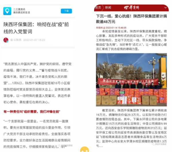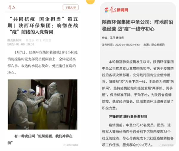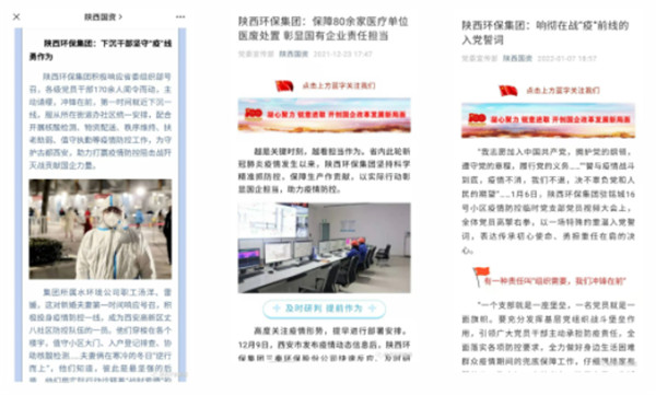 2022年1月1日、11日、12日,學(xué)習(xí)強(qiáng)國對陜西環(huán)保集團(tuán)沖鋒在一線的志愿者進(jìn)行報(bào)道。