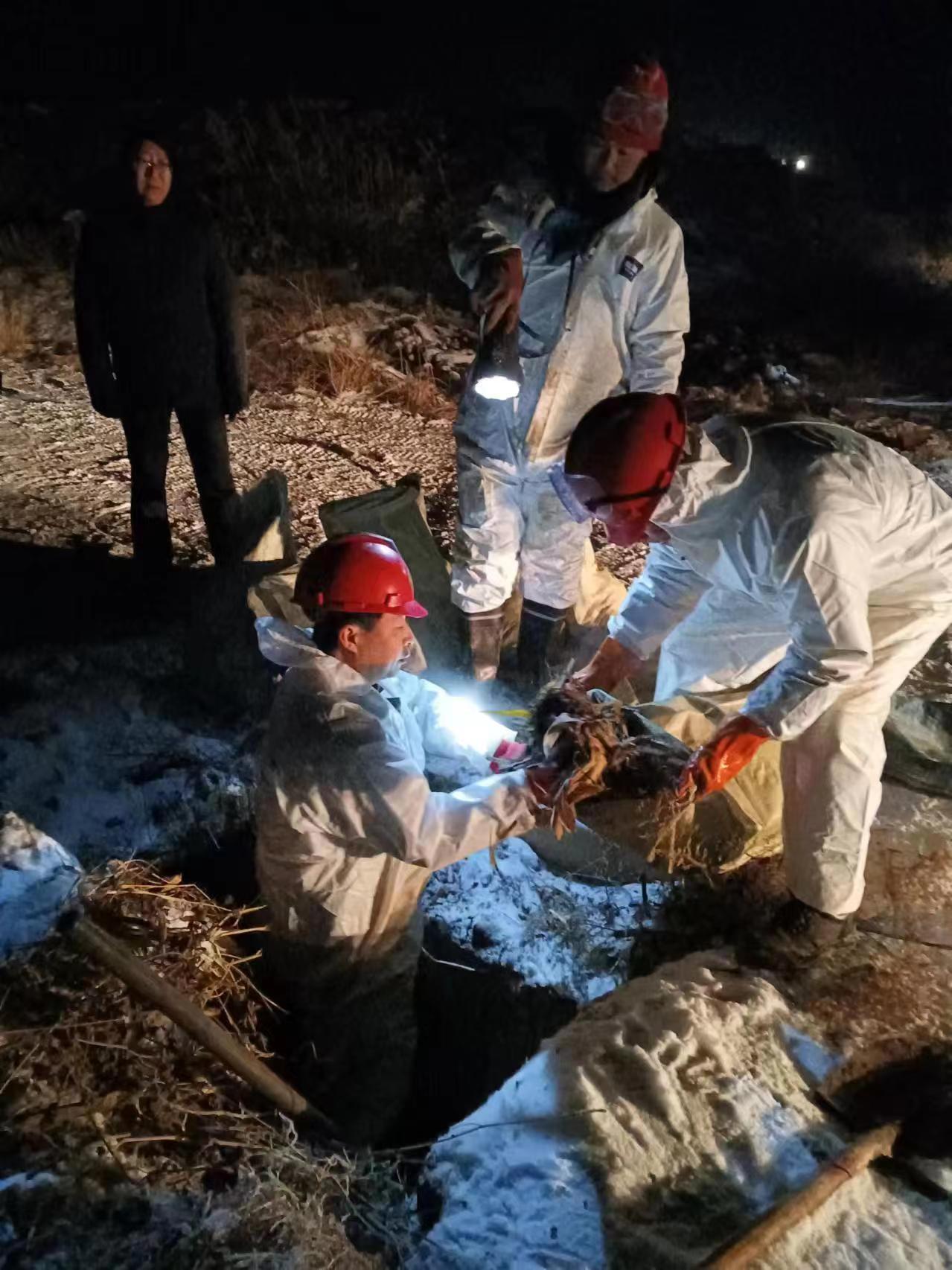 風(fēng)雪交加,國道溝深路滑,應(yīng)急救援車行駛了近7個小時后到達(dá)現(xiàn)場開展泄漏污染物清理工作。由于現(xiàn)場無法使用機(jī)械設(shè)備,新天地公司應(yīng)急救援隊人員只能穿好防護(hù)服進(jìn)行人工清理。零下8℃的雪天,隊員們大汗淋漓,人群中冒出一股股熱氣。經(jīng)過近6個小時的緊張作戰(zhàn),直至深夜,現(xiàn)場共清理污染油泥9.38噸,均運回省危廢處置中心安全處置。